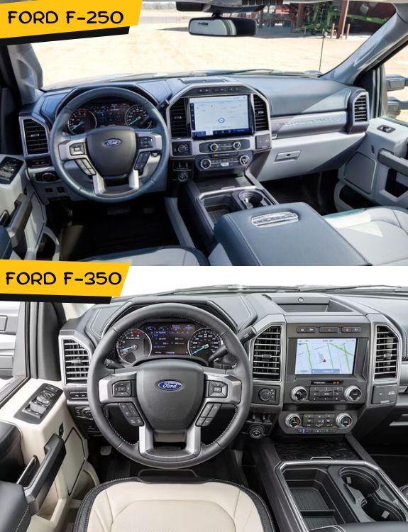 While there may be some overlapping features between the two models due to shared platforms within Ford’s Super Duty lineup (such as cabin design), certain specifications set them apart: